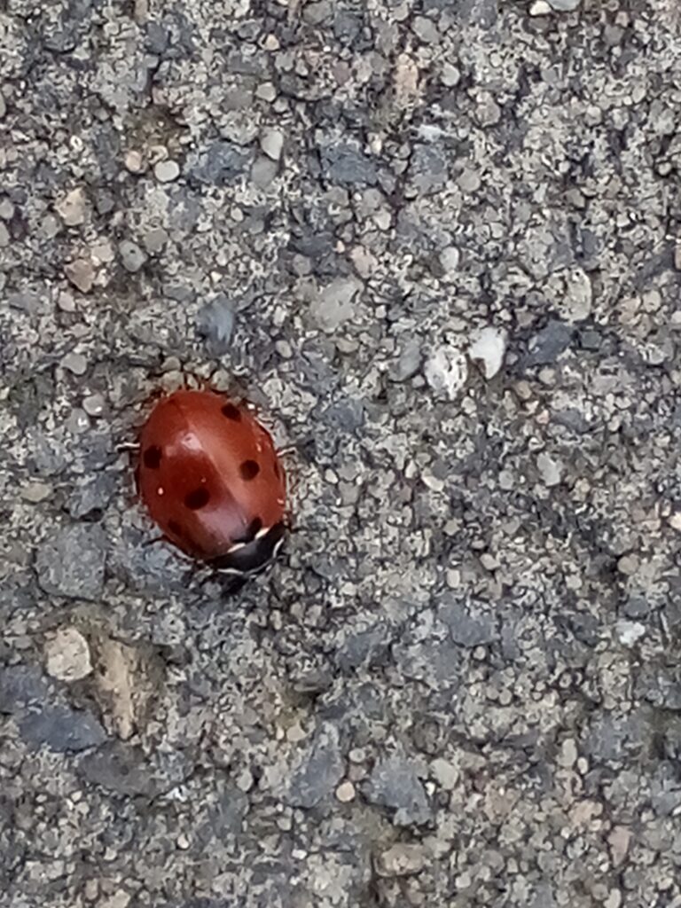 Farbe : Rote Deckflügel, schwarze Punkte auf den Deckflügeln